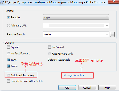 Tortoisegit pull时,提示Couldn't load this key(unable to open file) 发表于 2019-10-02 更新于 2020-08-18 分类于 Git , Tortoisegit 问题描述之前新建了个ppk文件,删了旧的,今天在本地执行pull操作时,提示下面错误 解决方法从网上搜的方法是,配置remote,可惜并没有看到remote选项 于是,通过在pull弹出中,如下图操作,找到remote配置 如下图,选择最新的ppk文件,然后确定 重新pull时,就不会再提示无法加载了key文件了