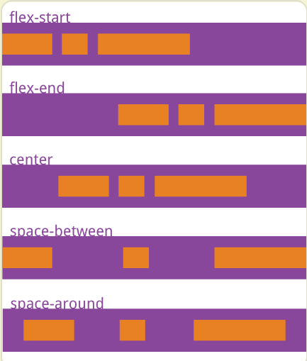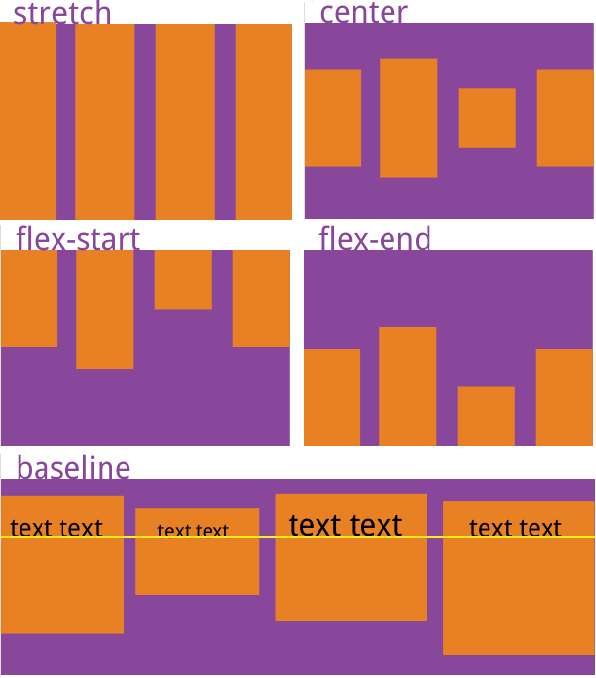 此属性用来设置成员在副轴上的对齐方式。默认值为 stretch,使得当成员没有设置副轴方向大小(或设置为auto)时,则成员撑满副轴方向的空间。