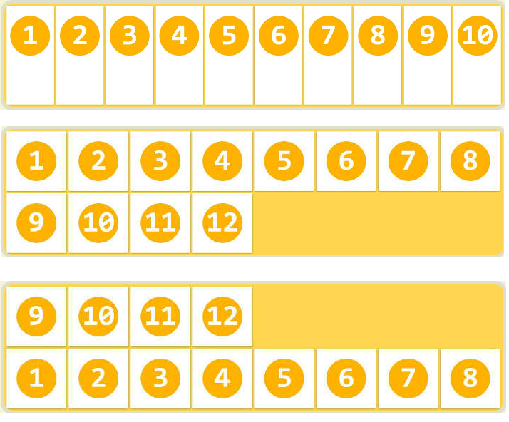 下面图依次展示了 nowap、wrap、wrap-reverse 的设置效果: