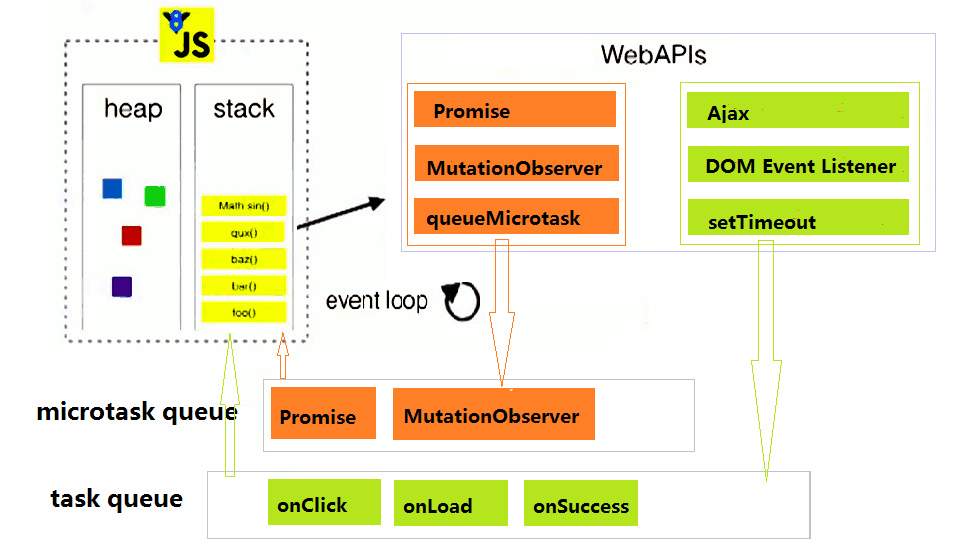 1. 函数执行过程中调用 Promise、MutationObserver 等 WebAPI 产生的异步任务需要执行时,会被插入微任务队列(microtask queue) 中。